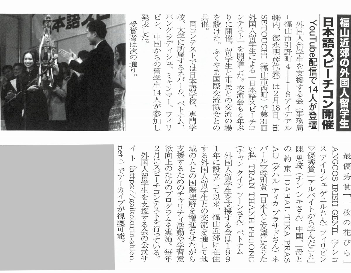 びんご経済レポート3月10日号 日本語スピーチコン開催